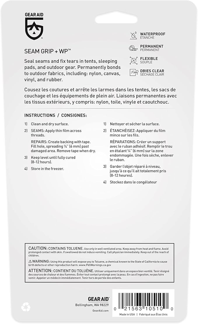 GEAR AID Seam Grip WP Waterproof Sealant and Adhesive for Jackets, Tents, Sleeping Pads and Outdoor Fabric | Repairs Rips, Seals Seams on Nylon, Canvas and Vinyl