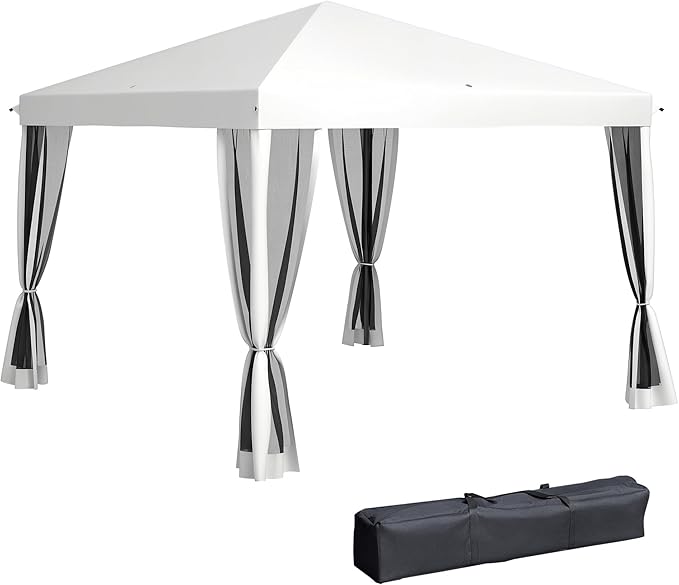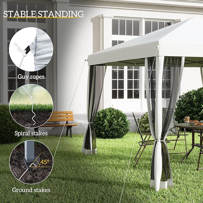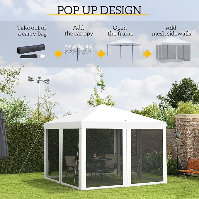 Outsunny 10' x 10' Pop Up Canopy Tent with Netting, Instant Gazebo, Screen House Room with Carry Bag, Height Adjustable, for Outdoor, Garden, Patio, Camping, Cream White