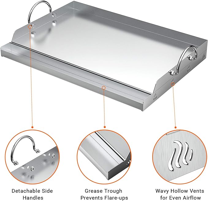 - 【Premium Material】The griddle is made from 100% food-grade stainless steel, strong and durable, not easy to deform and convenient to clean and maintain.