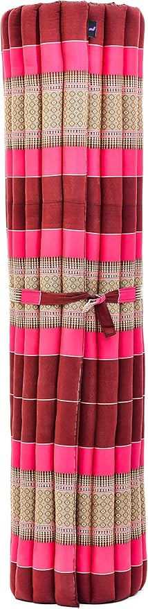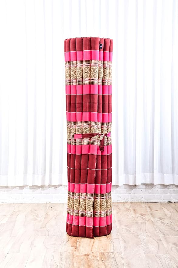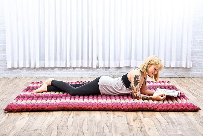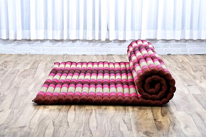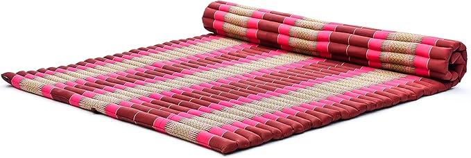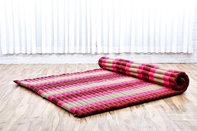 Leewadee - Foldable Floor Mattress - Japanese Roll Up Futon -Trifold Tatami Mat- Guest Floor Bed - Camping Mattress - Thai Massage Mat, Kapok Filled, 75 x 57 inches, Auburn Pink