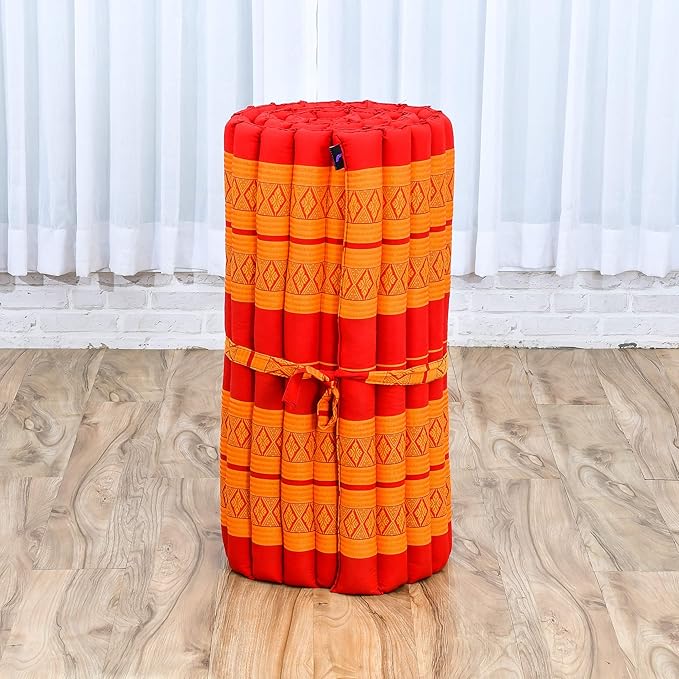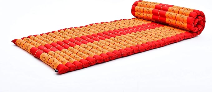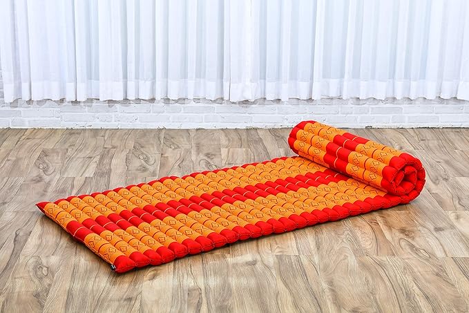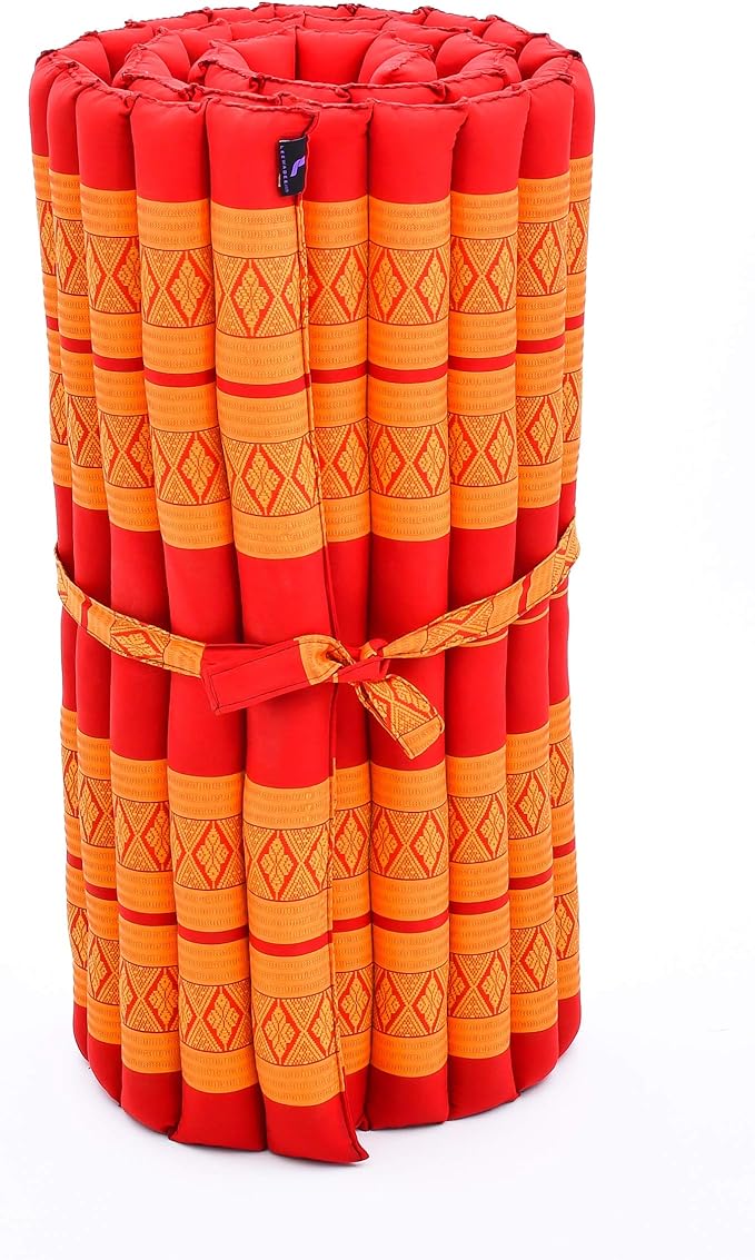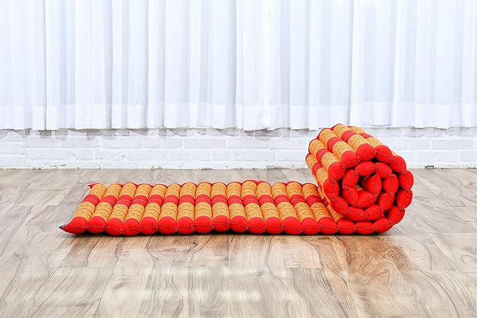 Leewadee - Foldable Floor Mattress - Japanese Roll Up Futon -Trifold Tatami Mat- Guest Floor Bed - Camping Mattress - Thai Massage Mat, Kapok Filled, 75 x 28 inches, Orange Red