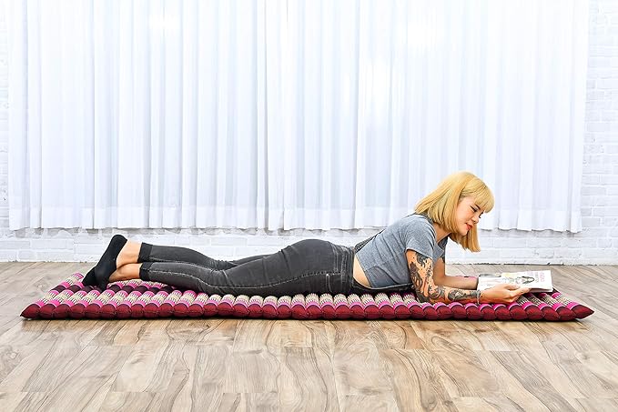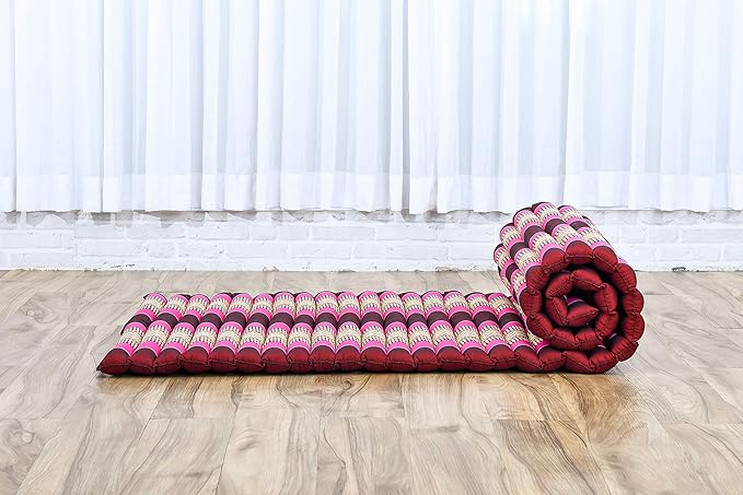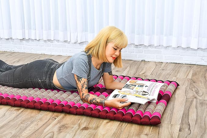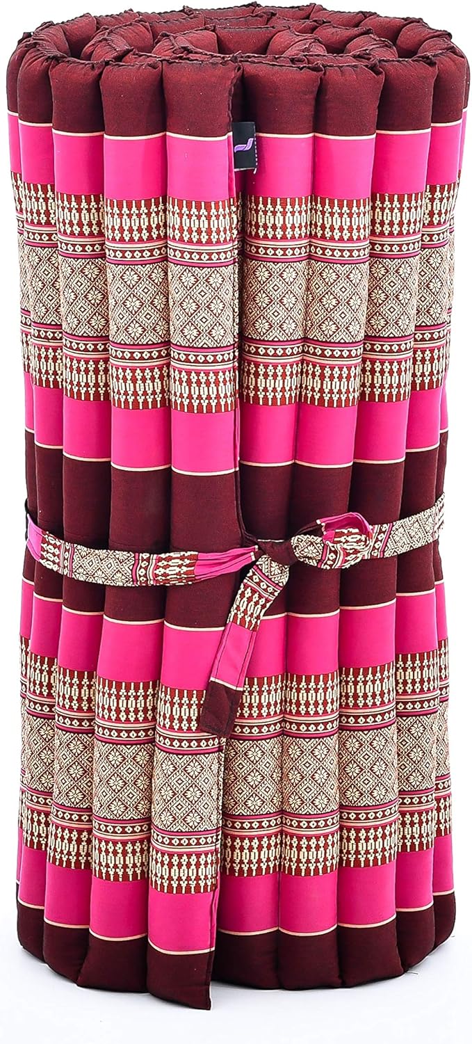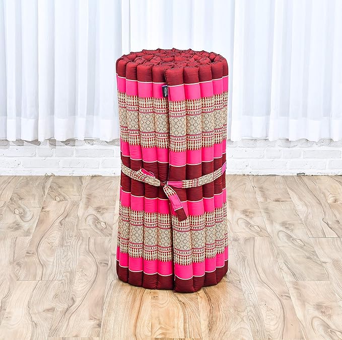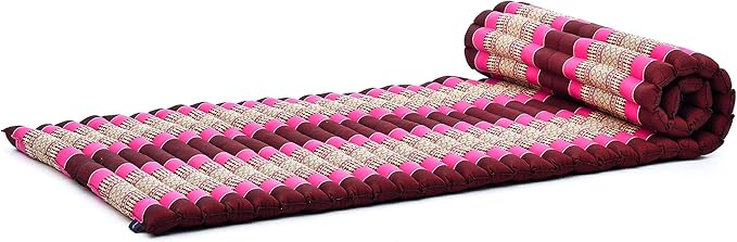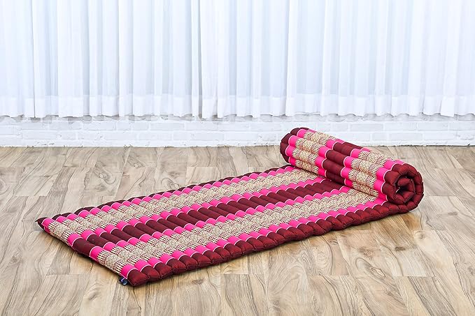 Leewadee - Foldable Floor Mattress - Japanese Roll Up Futon -Trifold Tatami Mat- Guest Floor Bed - Camping Mattress - Thai Massage Mat, Kapok Filled, 75 x 28 inches, Auburn Pink