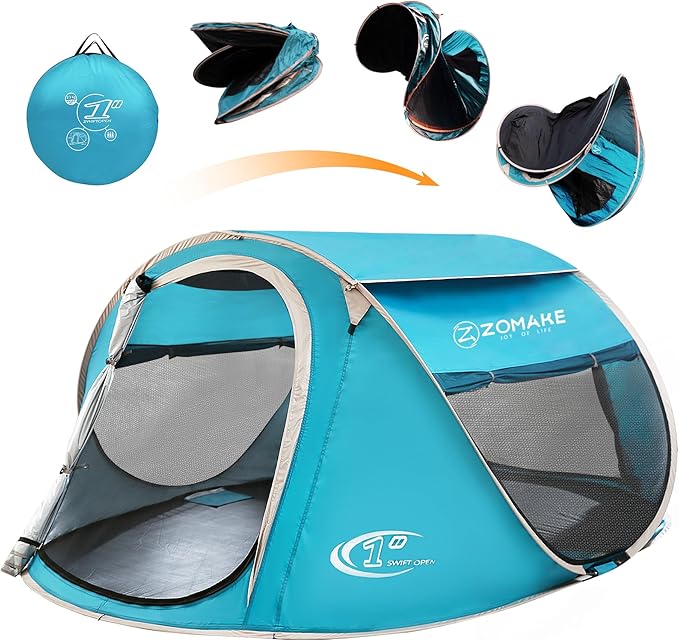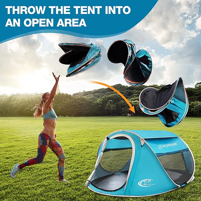 - MULTIPURPOSE POP UP TENT AUTOMATIC SET UP: Pop up tents waterproof have a wide range of uses,suitable for camping,picnics,gatherings and other leisure and happy activities with family and friends in fields such as the wilderness,parks,family backyards,campus playgrounds,beaches,etc.Whether it's spring,summer,autumn,winter,day or night,ZOMAKE pop-up tents can provide us with a comfortable home,where we can bathe in sunlight during the day and look up at the starry sky at night