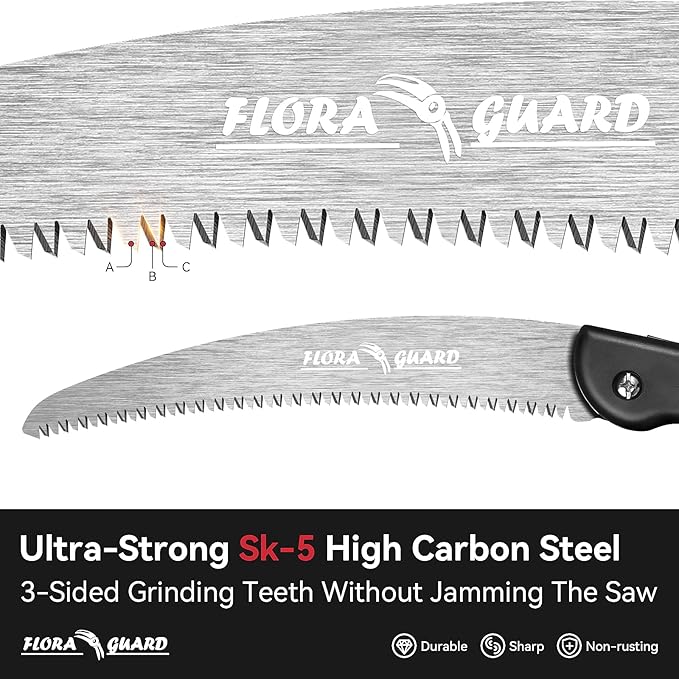 FLORA GUARD 10-Inch Folding Hand Saw, Heavy Duty Pruning Saw with Multi-Level Razer Teeth for Wood Cutting, Tree Trimming, Professional Camping Gardening Tools