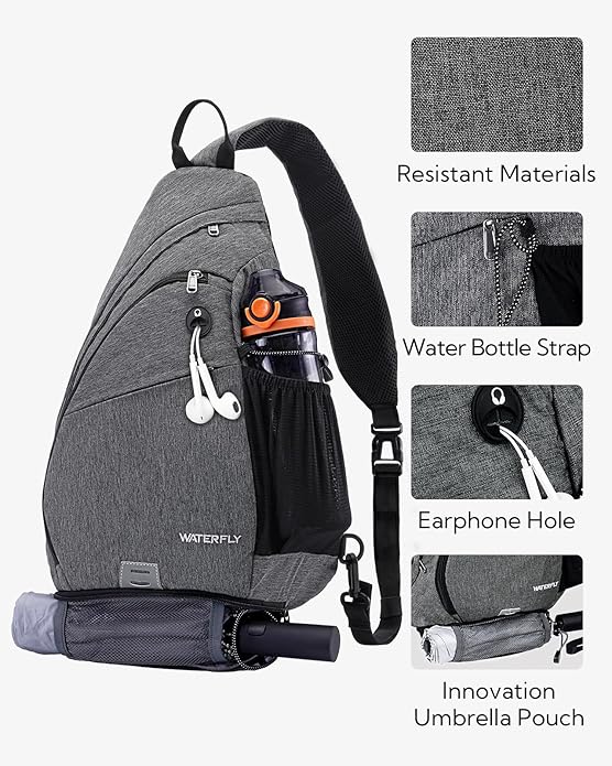 WATERFLY Large Crossbody Sling Bag: Over Shoulder Backpack Daypack Casual Cross Chest Side Pack