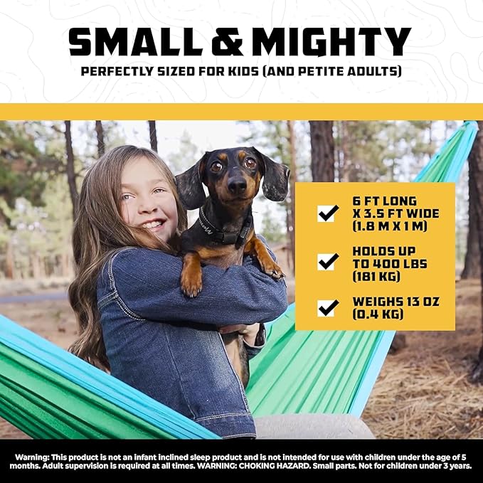 - CAMPING GIFTS FOR KIDS: Perfect for the young explorer, our outdoor hammock makes a fun gift for kids of all ages to use anywhere - from the backyard to your next camping trip!