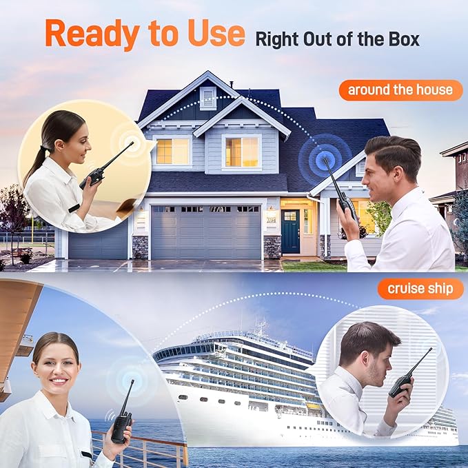 - Range is very dependant on terrain;up to 5 miles with no obstructions,less in congested area;work great in a commercial construction or around the house;suitable for security team;maintenance team; construction team; warehouse; factory; police; airsoft; kitchen staff;hotel;retail store;at the school;events communications;roadtrip while driving in different cars;family camping and hunting;on a cruise ship;in mountains;it works worldwide;you can add as many as you want and they work great together