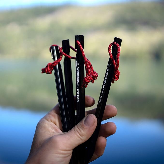- All-in-One Setup: Includes six 10-foot guy lines, aluminum tent stakes, a stake pouch, and a waterproof carry bag for efficient setup. Whether anchoring a tarp shelter or hammock rainfly, installation is quick and reliable for any outdoor terrain.