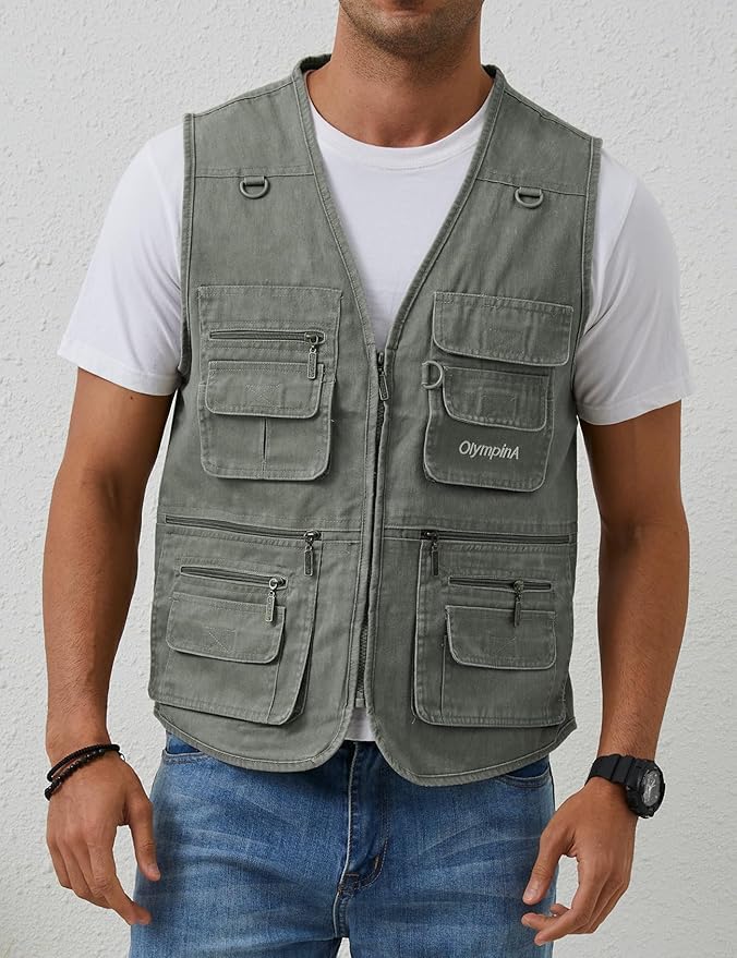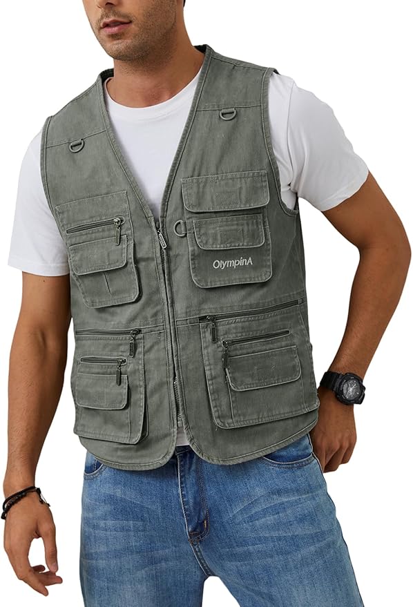 • 【Multi-Pockets】Outdoor work safari vest cargo vest, suitable for men's leisure activities, freight, camping, work, hunting, fishing, travel, photo vest, front zipper and V-neck, with 16 different sizes of functional pockets and 3d rings, easy to hang glasses and carry other items.