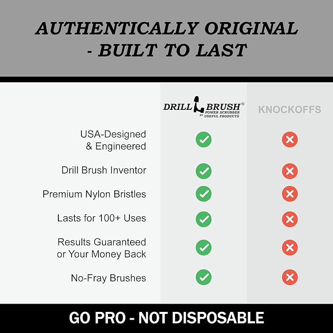 - CRAFTED BY INNOVATORS, TRUSTED BY MILLIONS - THE DRILLBRUSH STORY: Born from a real need and refined through feedback, Drillbrush Power Scrubber products are proudly made by cleaning enthusiasts for cleaning enthusiasts. With millions sold, our brush attachment for power drill lineup reflects a commitment to quality, innovation, and customer satisfaction. Experience the difference with Drillbrush - inventor/innovator of the brush drill attachment for cleaning your home