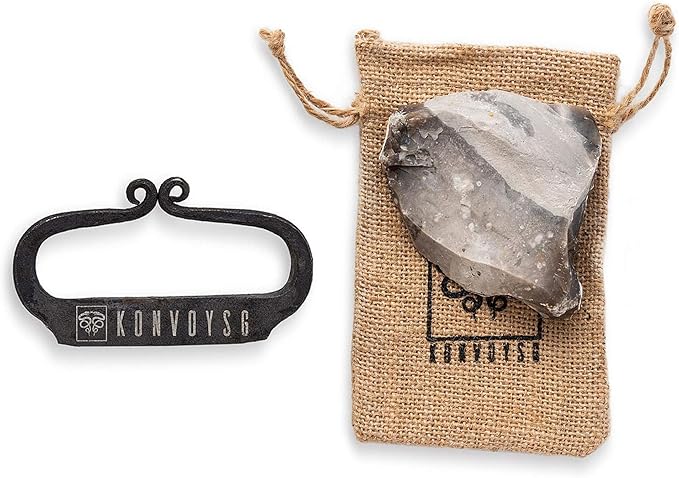 Flint and a Steel Striker Made from Carbon Steel Traditional Hand Forged Fire Starter Comes with English Flint Stone and Emergency Tinder Jute Carry Bag