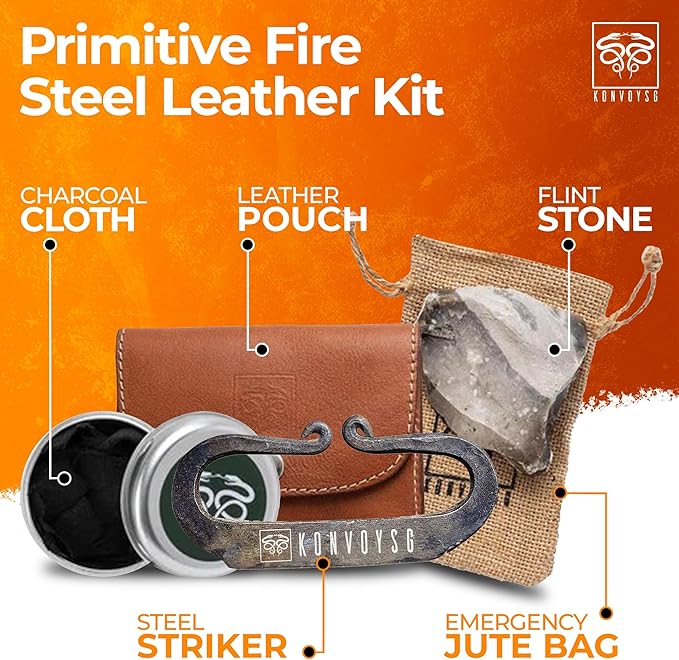 - Flint & Steel Legacy: Ignite the wilderness with KonvoySG's hand-forged carbon steel striker and English flint stone, mastering traditional firecraft like a pro.