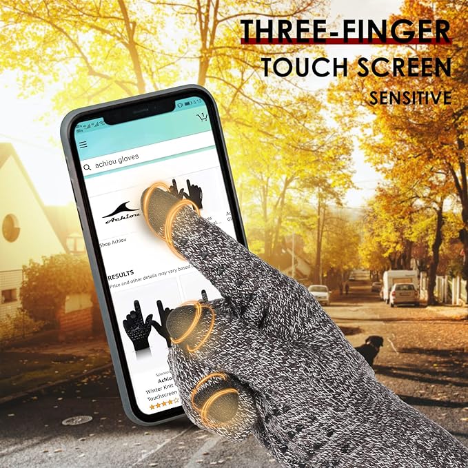 - Convenient & Breathable Material : Living in the technology age, Achiou winter knit gloves let you use your phone without having to expose your hands. Breathable material allows the gloves to ventilate in order to decrease sweat accumulation.