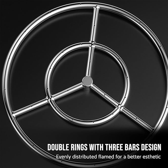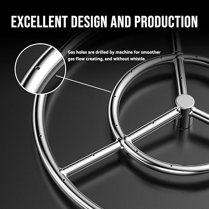 Skyflame 18-Inch Round Fire Pit Burner Ring for Natural Gas/Propane Fire Pit, 304 Stainless Steel…
