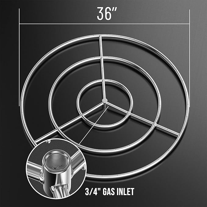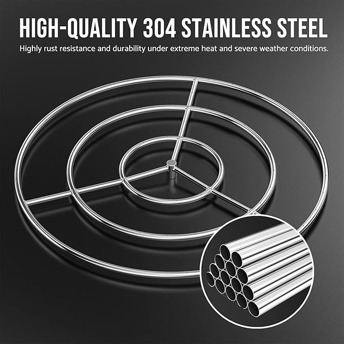 Skyflame 36-Inch Round Fire Pit Burner Ring, 304 Stainless Steel