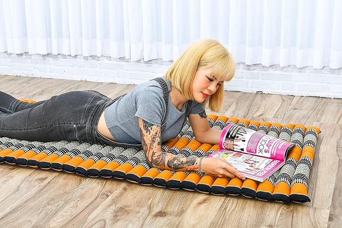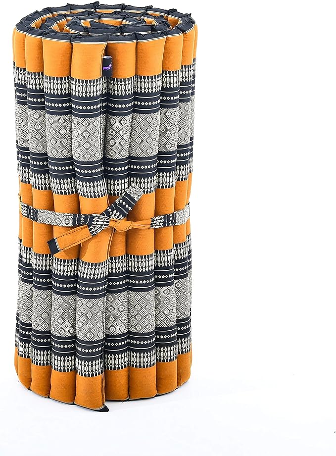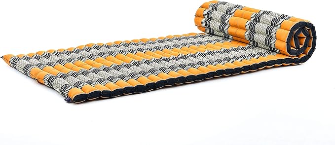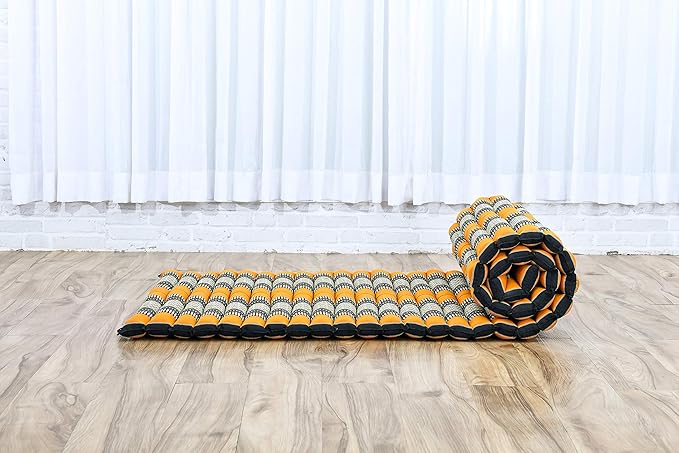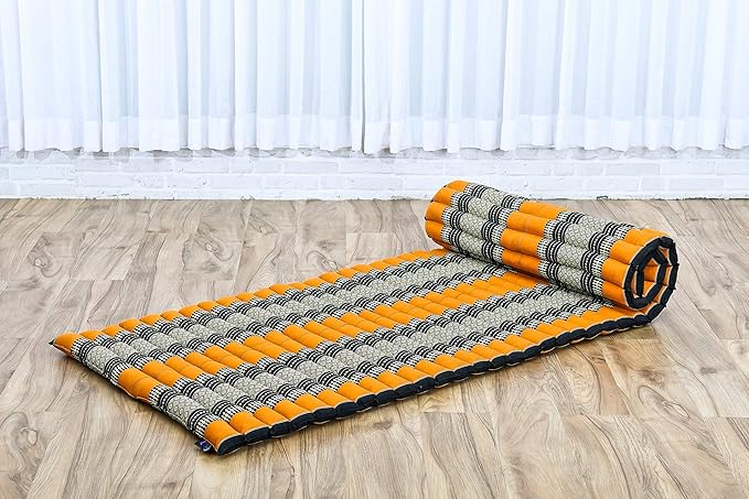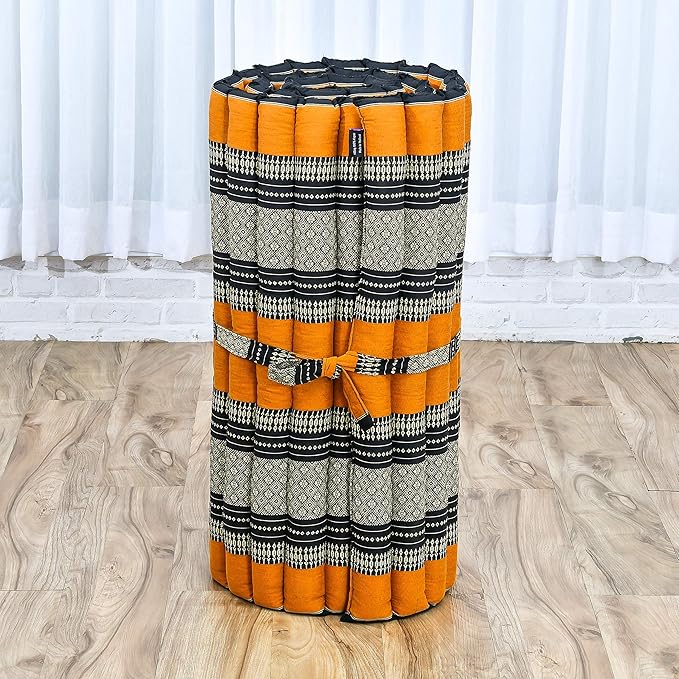 Leewadee - Foldable Floor Mattress - Japanese Roll Up Futon -Trifold Tatami Mat- Guest Floor Bed - Camping Mattress - Thai Massage Mat, Kapok Filled, 75 x 28 inches, Black Orange