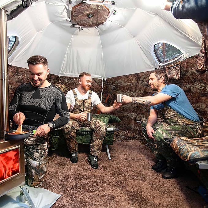- Included Components : Bag, Fixing bolt, Spare parts kit, Heat-resistant wal, Detachable organizer, Pegs, Transparent velcro window, Tent, Stove, Dome net shelf, Warm Floor, Swing door, Tension rope Bag, Fixing bolt, Spare parts kit, Heat-resistant wal, Detachable organizer, Pegs, Transparent velcro window, Tent, Stove, Dome net shelf, Warm Floor, Swing door, Tension rope