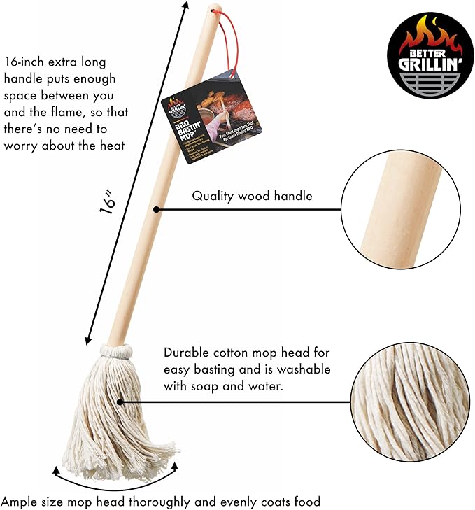 - A great addition to your grilling tools, Better Grillin BBQ Mop -head is made entirely of cotton, washes out easily with soap & water; One of several useful bbq accessories, easy basting mop