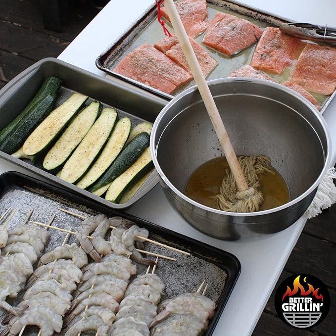 - Mop head is unique in size- can completely cover any cut of meat with your desired amount of sauce as it cooks, 16-inch wooden handle keeps your hands far from the flames and away from heat