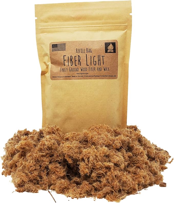Fiber Light Natural Wood Fiber Fire Tinder Refill Bag, Water Resistant Outdoor Camping Survival Fire Starter