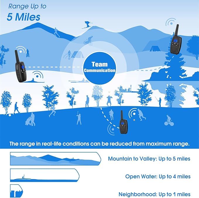 - 【Various Occasions】:Topsung adult walkie talkies are easy to operate and carry even for kids. So they are suitable for indoor and outdoor activities, such as home, mall, cs games, camping, hiking, cycling, cruise ship, road trip, etc. With Topsung adult walkie talkies, you can keep talking with all family members or all your travel partners at the same time