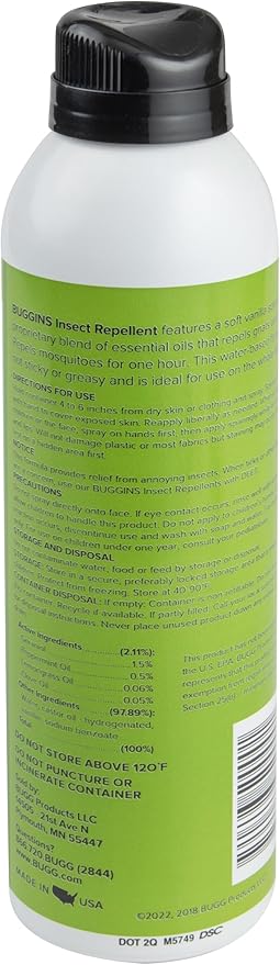 BUGGINS Original - Insect Repellent - Mosquitoes & Gnats, DEET Free, Non-Greasy - 6 oz Continuous Spray Can