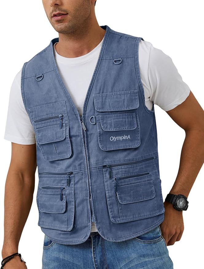 • 【Features】 Multi-pocket travel vest, hunting vest, summer sports sleeveless jacket, front zipper, fitted, V-neck, sleeveless, solid color, multi-pocket, lightweight, quick drying, breathable. Keep you cool in the hot summer, is a very practical and versatile spring, summer and fall vest.