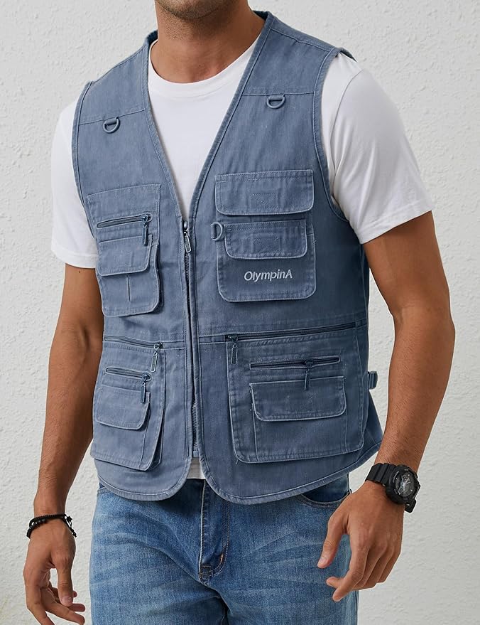 • 【Multi-Pockets】Outdoor work safari vest cargo vest, suitable for men's leisure activities, freight, camping, work, hunting, fishing, travel, photo vest, front zipper and V-neck, with 16 different sizes of functional pockets and 3d rings, easy to hang glasses and carry other items.