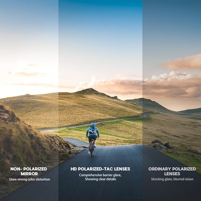 - HIGH-QUALITY TAC & PC MATERIAL: All Lens are made of high quality shatterproof TAC material that is robust enough for prolonged wearing. Lightweight PC frame design is ideal for motorcycle; cycling; bicycle; driving; running; fishing; racing; skiing; climbing; trekking or other outdoor activities, scratch resistant and unbreakable