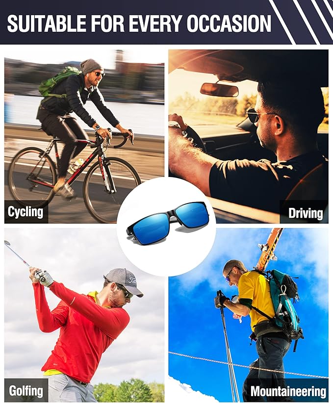 - 【Perfect Accessory Partner】 The Classic Fashion Rectangular Frame Is Designed For Various Kinds Of Occasions, Either You Are Showing At The Party Or Fishing ,Driving ,Running, Hiking ,Climbing, Cycling, Boating Or Other Outdoor Activities, You Will Like It As A Real Partner. Nice Gift Package Contains Premium Box, PU Leather Case Which Is A Good Gift Idea For Your Family And Friends.