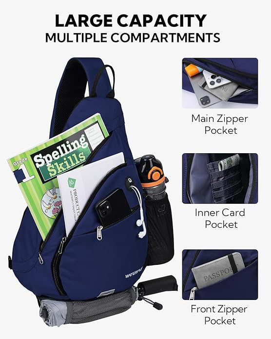 WATERFLY Large Crossbody Sling Bag: Over Shoulder Backpack Daypack Casual Cross Chest Side Pack