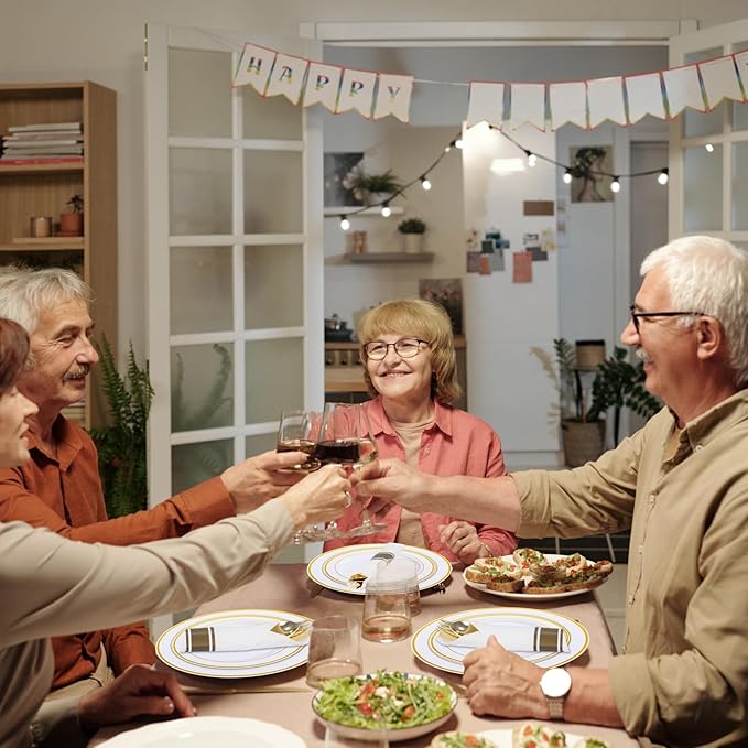 - CONVENIENT TO USE: Host a holiday celebration, party or event with these quality plastic plates disposable and avoid the fuss of washing dishes afterwards - the best of both worlds! Have fun and celebrate!
