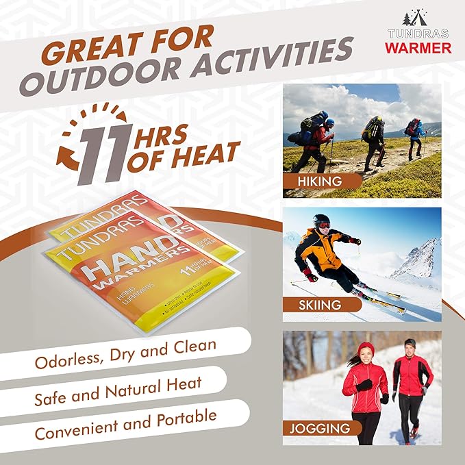 - LONG-LASTING HEAT: Keep your hands toasty when it’s cold outside with up to 11 hours of heat. Use them in your gloves or pockets and instantly feel soothing warmth. Do not apply directly to skin. Premium quality