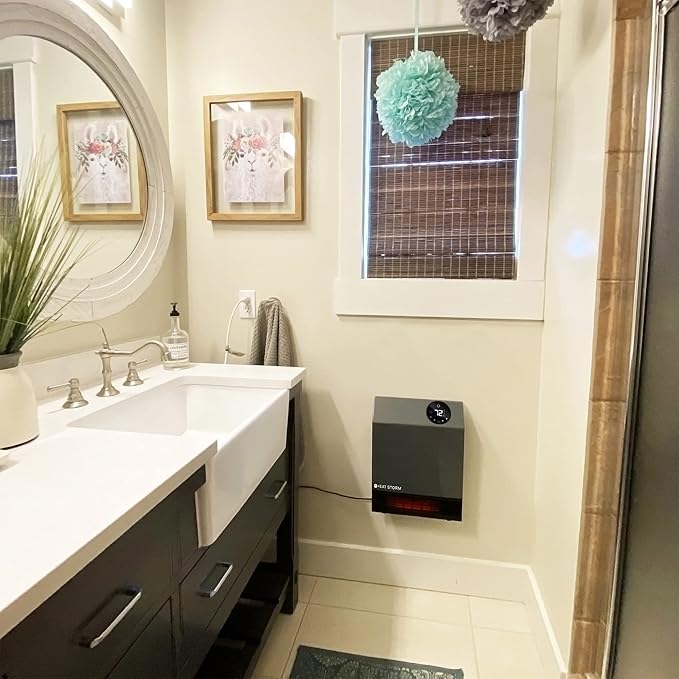 Heat Storm Wall Gray HS-1000-WX Deluxe Indoor Infrared Space Saving-1000 Watts-Remote Control-Home & Office Heater-Safe to Touch Grill, 13x4x17