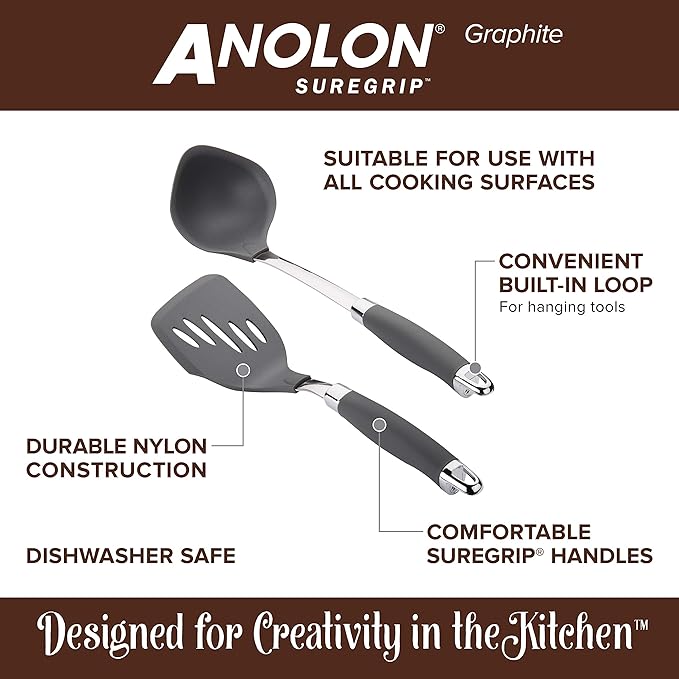 - SURE GRIP READY: Sturdy stainless steel neck comes with Anolon SureGrip handle for a soft yet confident grip