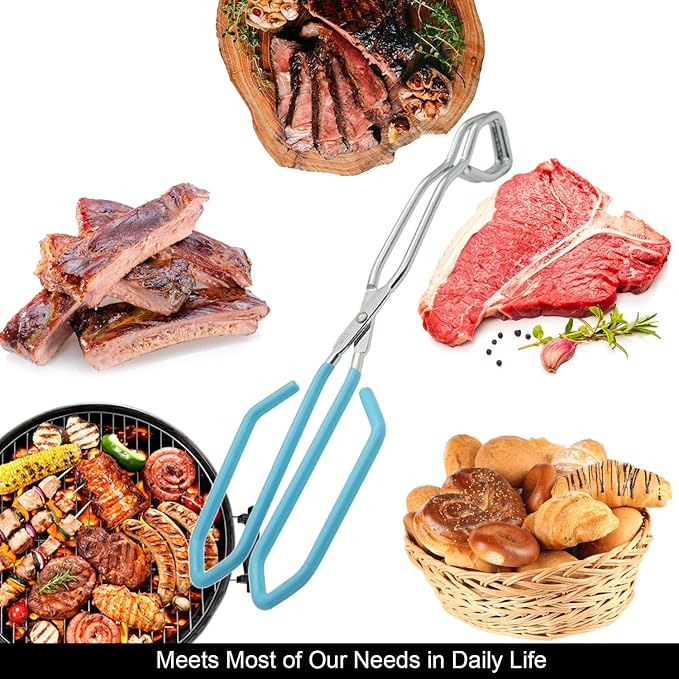 - DURABLITY MATERIAL, HEAT RESISTANT AND DISHWASHER SAFE - Our Scissor Tongs are manufactured from premium 100% food grade stainless steel and anti-slip silicone coated handles, heat Resistant and dishwasher safe. Ensure safe and long-term service.