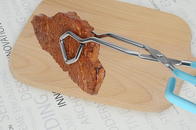 - DURABLITY MATERIAL, HEAT RESISTANT AND DISHWASHER SAFE - HINMAY Scissor Tongs are manufactured from premium 100% food grade stainless steel and anti-slip blue silicone coated handles, heat Resistant and dishwasher safe. Ensure safe and long-term service.