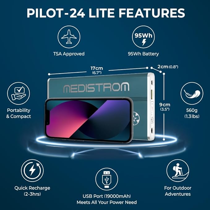 Bundle: Medistrom Pilot 24 Lite with 3 Pack Travel CPAP Wipes - 95Wh CPAP Battery Backup Power Supply for CPAP Machine - Camping Power Bank - Lightweight Portable Battery - TSA Approved CPAP Battery