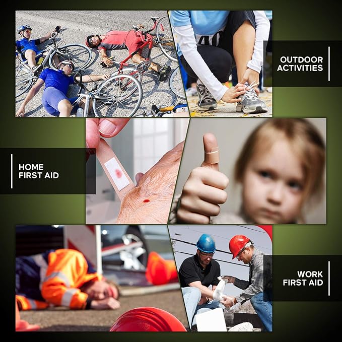 - Wide Usages:This first aid kit is stocked with first aid supplies and a range of survival equipment. Versatility makes this first responder kit an excellent VEHICLE first aid kit while the components lend themselves just as well to hiking, camping, backpacking, hunting, travel,boat, car or other vehicle. From military to civilian!