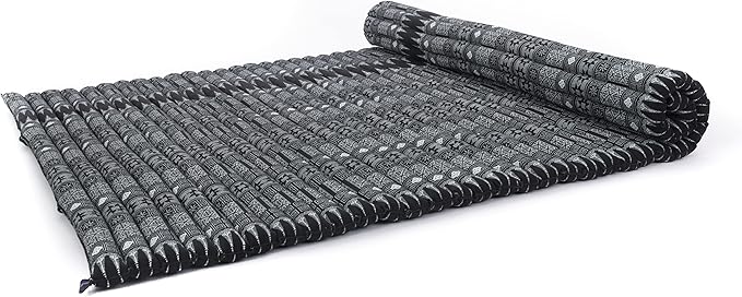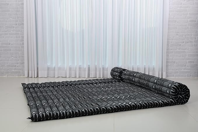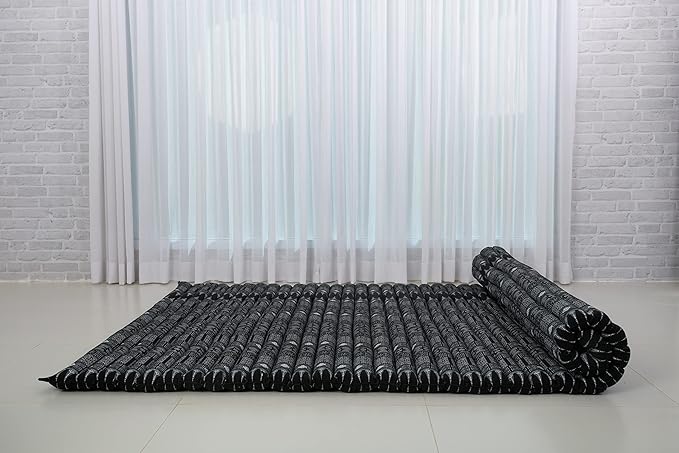 Leewadee - Foldable Floor Mattress - Japanese Roll Up Futon -Trifold Tatami Mat- Guest Floor Bed - Camping Mattress - Thai Massage Mat, Kapok Filled, 75 x 57 inches, Black