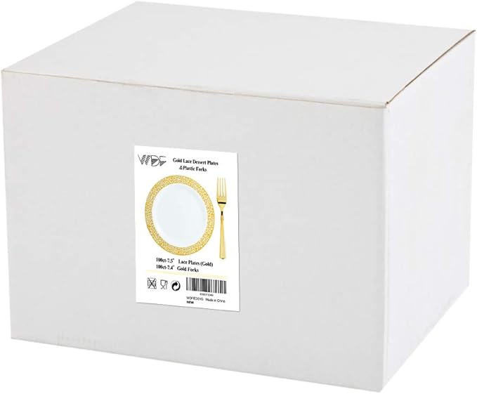 - BEAUTIFUL DESIGN: Elgant lace and modern design, our 100pack gold dessert forks are match well with 100pack gold plates. Your guests will amazing as they view the beautifully dinnerware set.