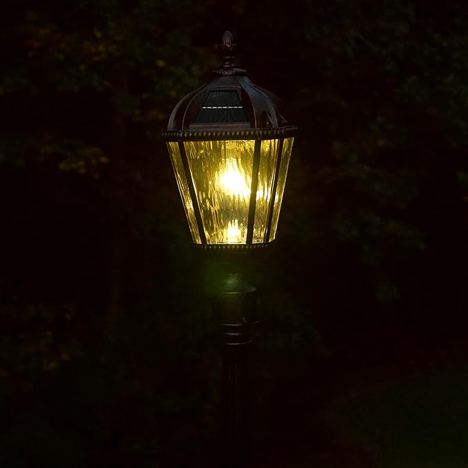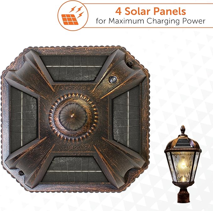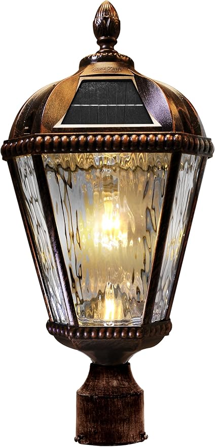 Gama Sonic Outdoor Solar Post Light, Brushed Bronze Finish Aluminum, Royal Bulb, Clear Rain Glass, 3-inch Fitter for Lamp Posts 98B112 (Upgraded Panel and Battery)