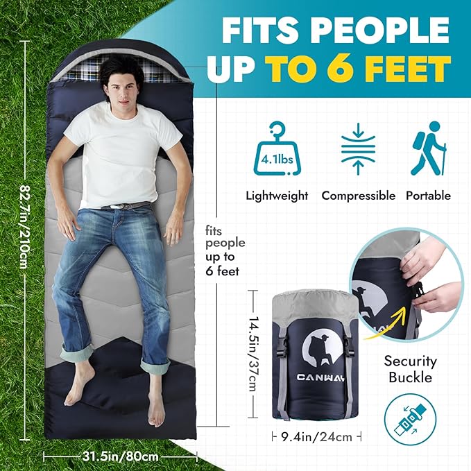 - ENJOY WARM SLEEPING: Warmth is key to enjoying a good night's sleep on outdoor adventures. You can stay warm and cosy at 55°F with Canway sleeping bag. For a comfortable night’s sleep consider the lowest outdoor temperature you’ll be sleeping in and ensure that temperature falls within the comfort range