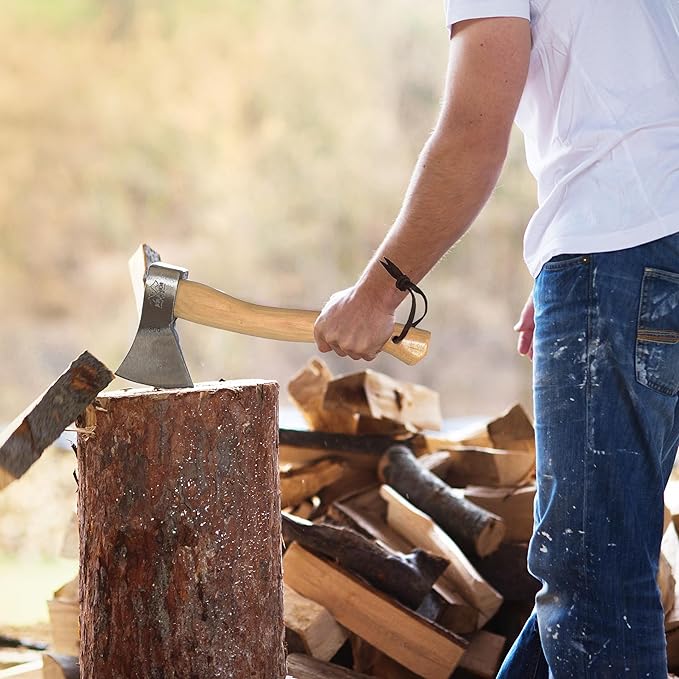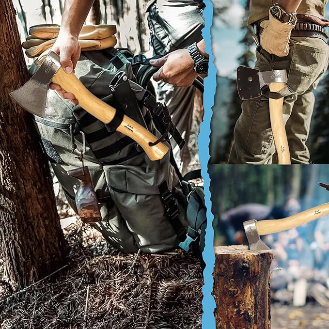 - HICKORY HANDLE FOR DURABILITY - Designed with American hickory, this handle absorbs shock and offers superior strength. Featuring refined root wood sublimation, the hickory handle enhances grip and style, making it an ideal choice for cutting, chopping, bushcraft, or camping hand ax needs.
