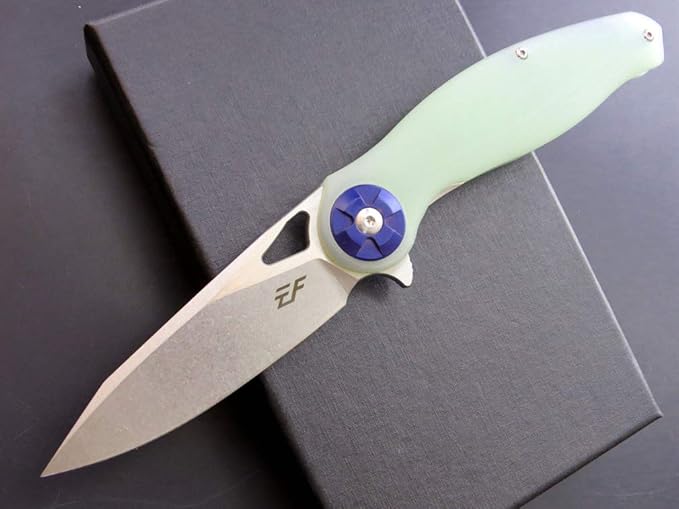 Eafengrow EF76 Ball Bearing Folding Knife for Camping EDC Pocket Knife with G10 Handle & D2 Stone-washed Blade Hunting Outdoor Tool (EF76-jade)