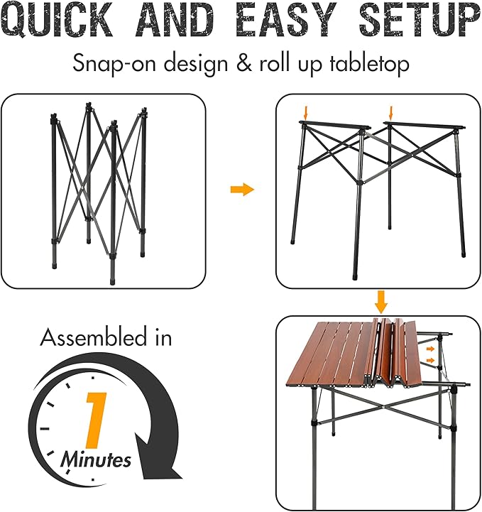 - Lasting Table Top: The camping table is made of aluminum, which is less likely to rust than ordinary steel, lighter in weight, and easy to clean