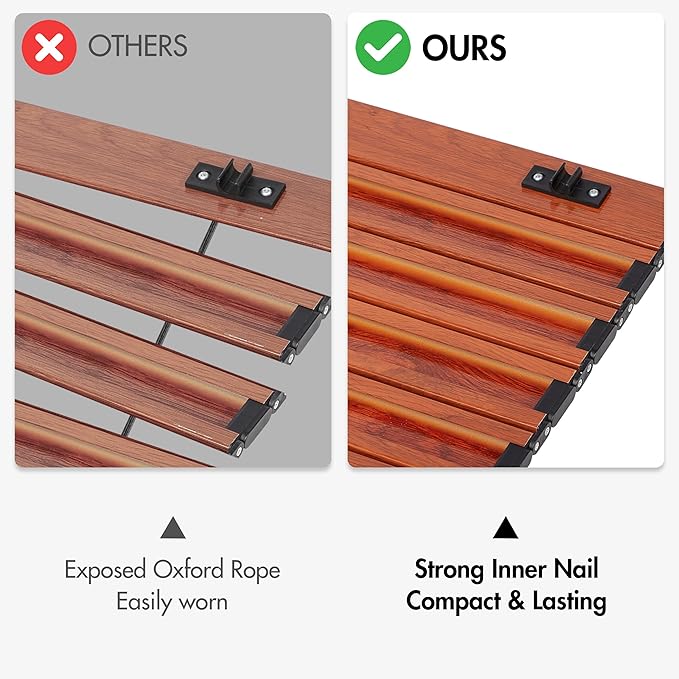 - Easy Carry Bag: This table comes with a carry bag which has two separate spaces for storing and transporting the folded frame and rolled up table top, this reduces potential scratches and damage during transportation
