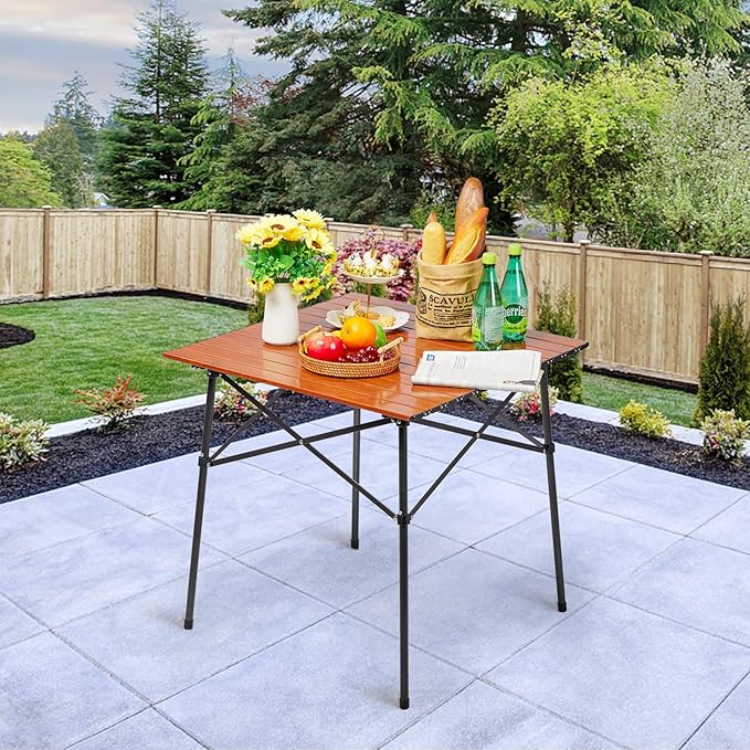 PORTAL Lightweight Aluminum Folding Square Table Roll Up Top 4 People Compact Table with Carry Bag for Camping, Picnic, Backyards, BBQ, Brown