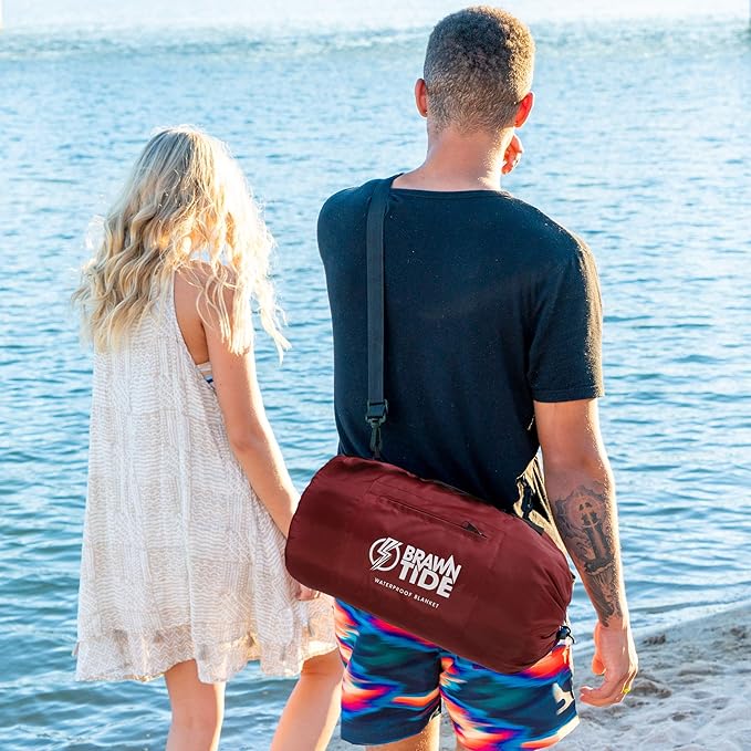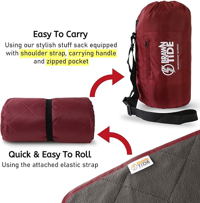 BRAWNTIDE Large Outdoor Waterproof Blanket - Extra Thick Fleece, Warm, Windproof, Sandproof, Quilted, 82" x 55", Ideal for Beaches, Picnics, Camping, Stadiums, Dogs, Car