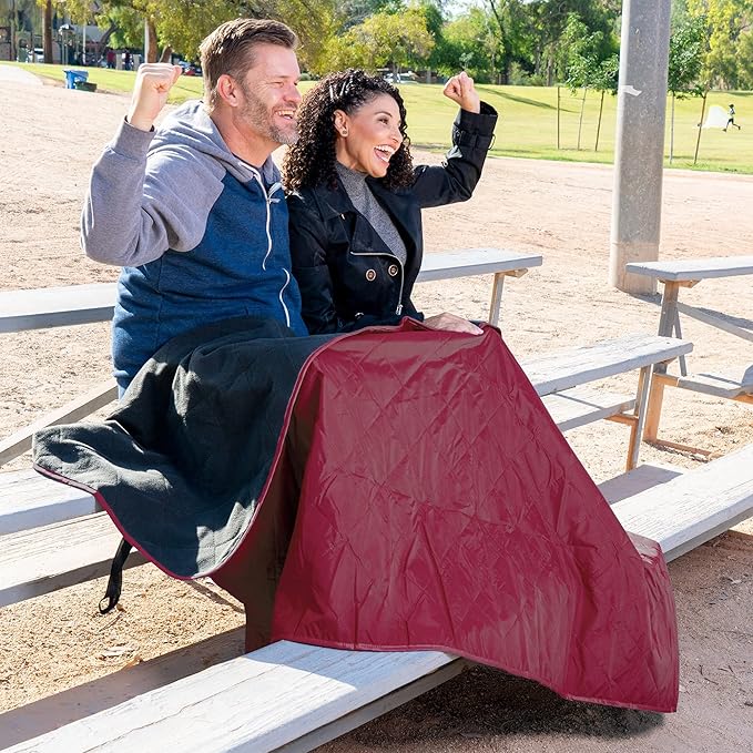 - Waterproof, Windproof, Sandproof - Designed to keep you dry on the wettest of days, the waterproof backing on our outdoor blankets is made from a strong, durable polyester fabric with a polyurethane coating, preventing water and moisture from penetrating through to the plush polar fleece. An ideal Stadium Blanket to keep you warm and dry or great for use as a Picnic Blanket or Beach Blanket.